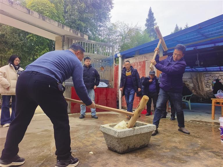 槌起槌落,石槽中的糯米逐漸變得軟糯綿綢,散發(fā)出誘人的清香。 團結(jié)報全媒體記者 吳正凱 攝