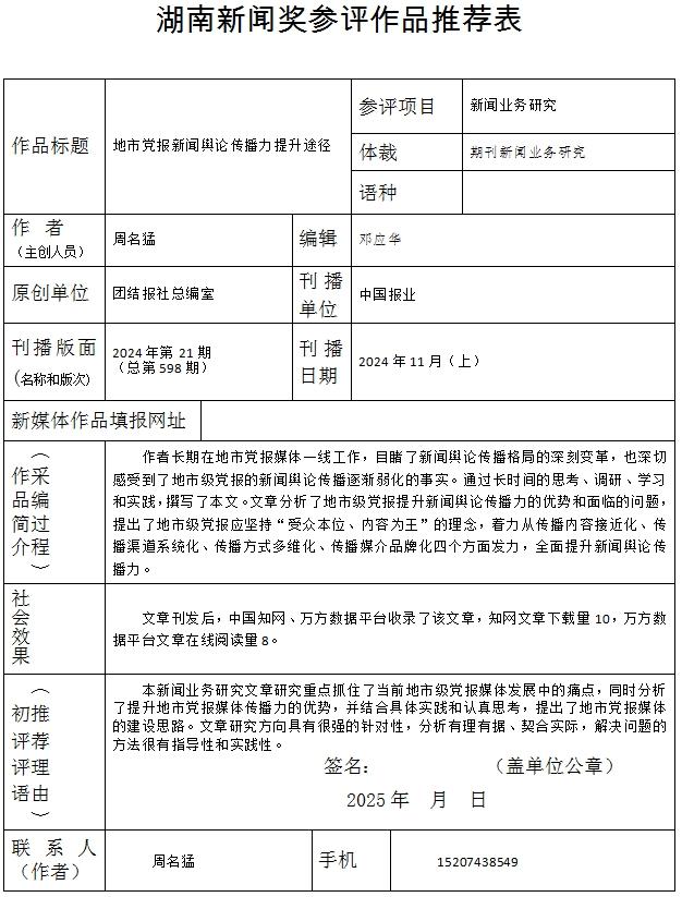 [關鍵詞]地市黨報新聞輿論傳播力提升途徑