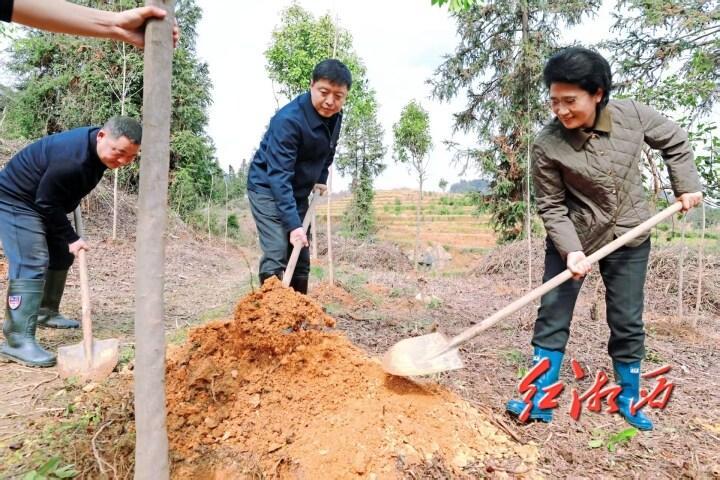 湘西網3月19日訊(全媒體記者 付丹)3月18日下午,湘西州委書記劉濤,州委副書記、州長陳華,州委副書記廖良輝,州人大常委會主任吳凌頻,州政協(xié)主席李平等在家州領導來到吉首市峒河街道曙光村小龍沖和長沖坡,與州直、吉首市干部群眾一同參加2025年度全民義務植樹活動。