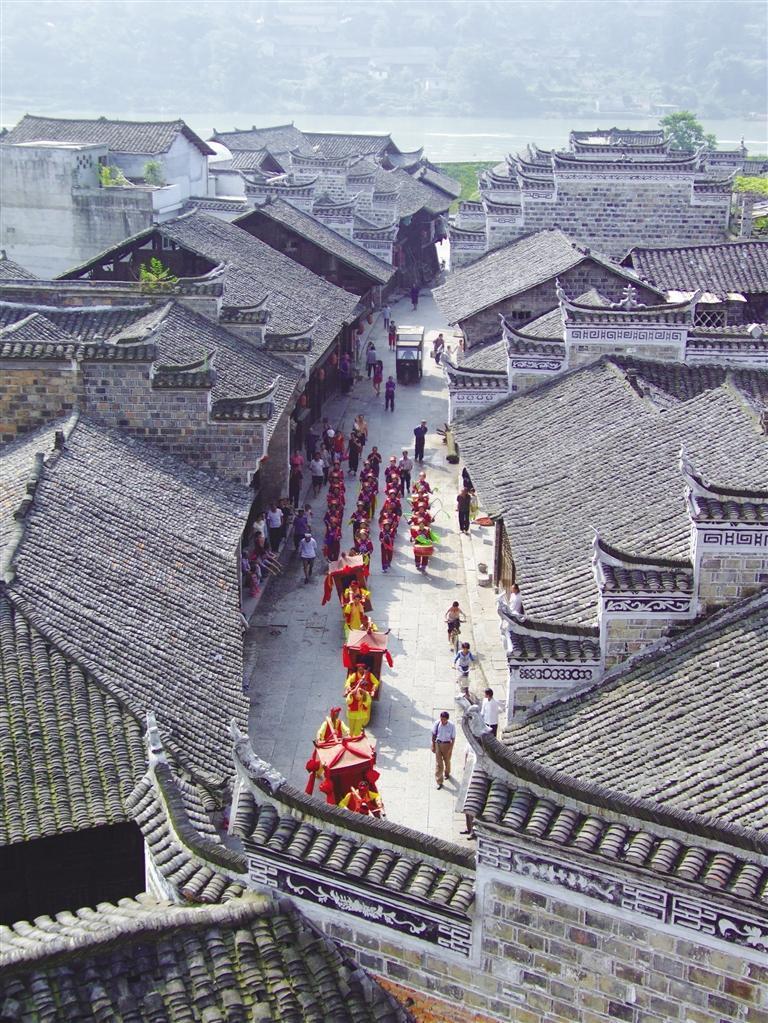 清末及民國時期,里耶古鎮坐擁七街六巷五行,土家、江南、西洋等風格民居鱗次櫛比,銀匠鋪、雜貨鋪、藥鋪、榨坊、染坊、印鈔坊商號眾多,萬商薈聚、百業興旺,一派繁華富足景象。上個世紀二三十年代,開國元帥賀龍曾率軍數度轉戰里耶,傳播革命火種,留下革命足跡。抗美援朝時,財力雄厚的“李同發”老板李氏兄弟向國家捐獻飛機一架,一時傳為美談。