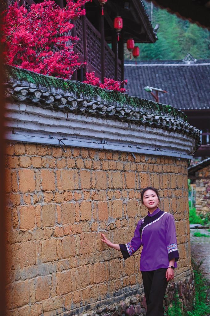 土墻、灰瓦、紅花、姑娘,共同繪成春日畫(huà)卷。