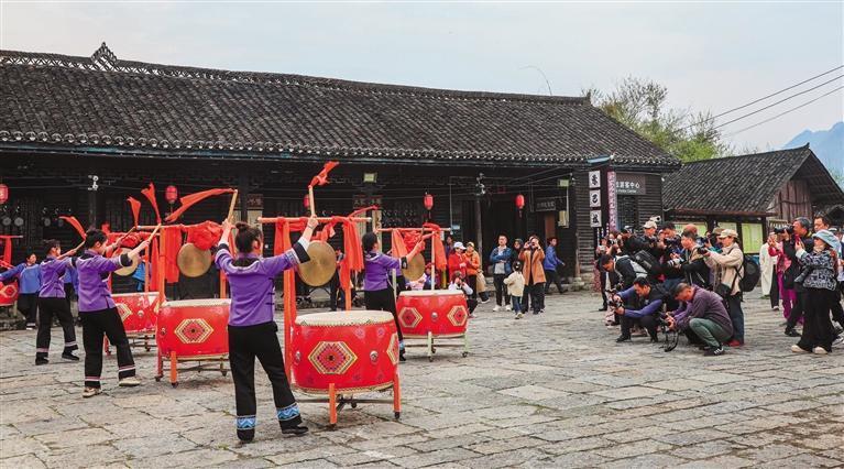 土家漢子的鼓地動(dòng)山搖,土家阿妹的歌婉轉(zhuǎn)多情,龍山縣惹巴拉景區(qū),攝影家們剛下車(chē),還沒(méi)來(lái)得及打開(kāi)鏡頭,裝滿米酒的粗陶碗就遞到手邊。