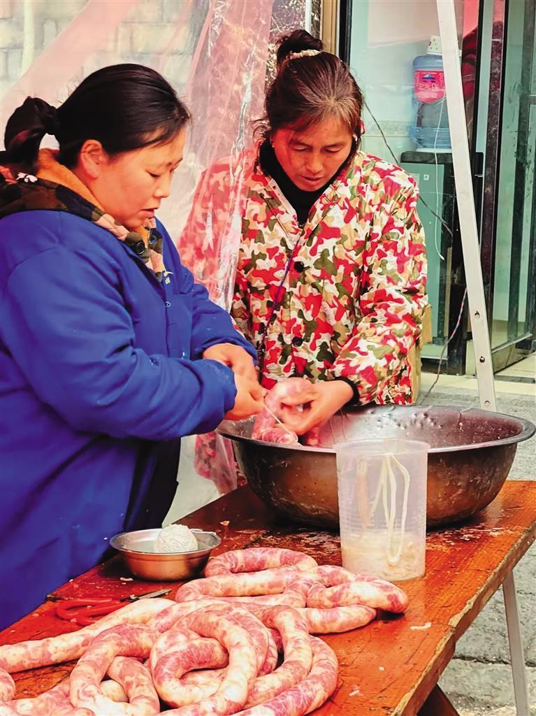 從寒山瘦水一路向前,村村寨寨響起豬的嚎叫,苗族人走到年的邊緣。殺年豬,過新年,已成為苗族人過年的標志。一頭大肥豬,能讓年過得開開心心,日子過得紅紅火火。年過完了,吃了豬雜、豬骨頭,剩下豬頭、豬肉、豬腳,被苗族人腌上鹽、抹花椒、撒五香,再掛到火炕上。不久,一炕臘肉被柴火炕得油黑發亮,從年邊吃到七八月天,依然香如故。吃苗族臘味,對精打細算謀生活,細水長流過日子,一定有更深的體會。