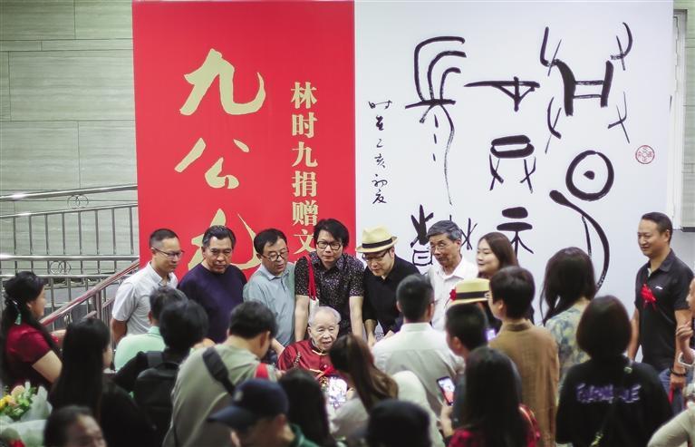 2023年6月,“九公九十——林時九先生捐贈文物及作品展”開幕式,觀眾將林老圍住,祝賀展覽圓滿成功 。