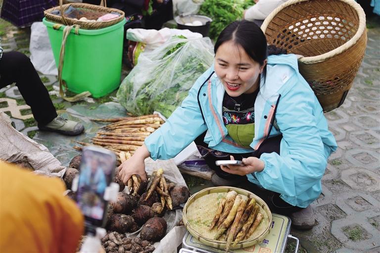每逢農歷四、九,就是吉首市乾州農貿市場趕集日。每到趕集日,農貿市場內人頭攢動,各種時令的山珍野菜、湘西的獨特美食、農人自家種植的新鮮蔬果在這里一一匯聚,格外鮮活,一場關于春天的“流動盛宴”正式開始。