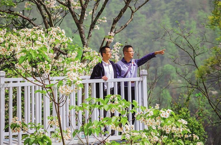 “近年來,桐花寨的旅游基礎設施日趨完善,柏油路通到了家門口和桐林,停車場和公共廁所建了起來,便捷的交通和完善的設施吸引了越來越多的游客。”脈龍村黨支部副書記向民才介紹。