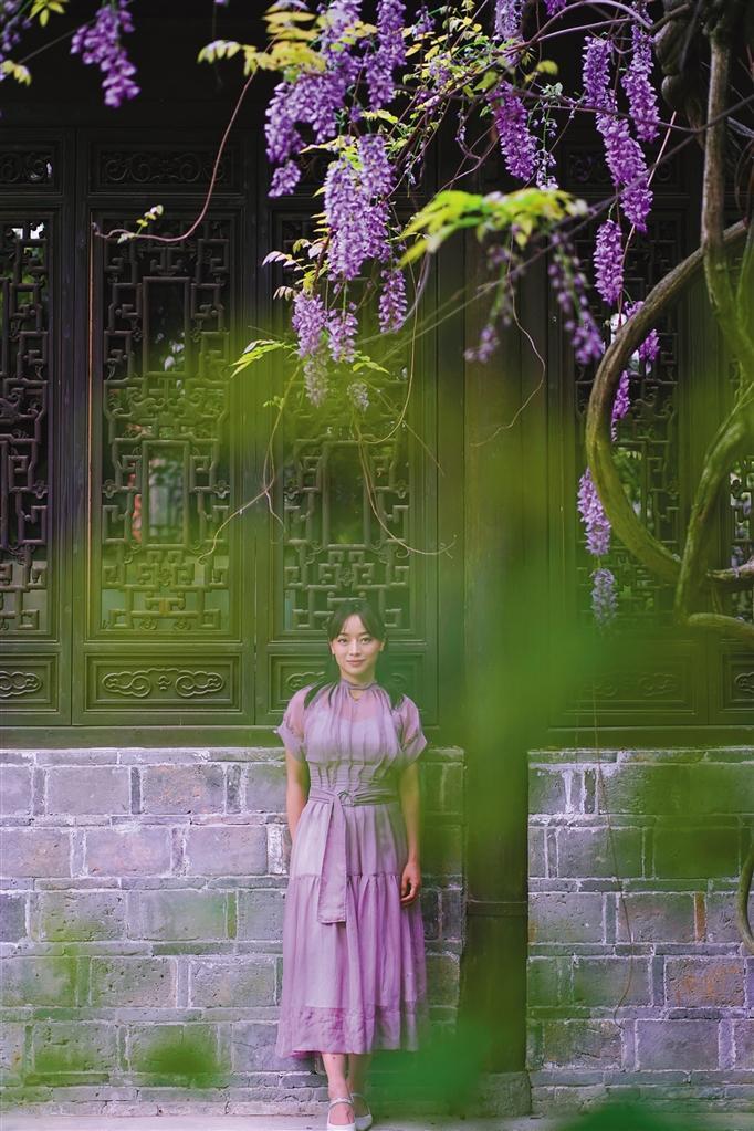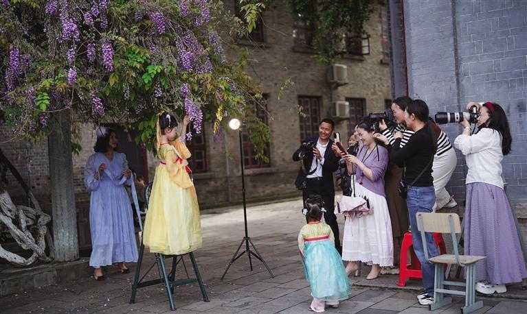 吉首大學雷公井校區潕溪書院,紫藤花垂掛如瀑,游客市民來打卡,共赴這場春日花約。
