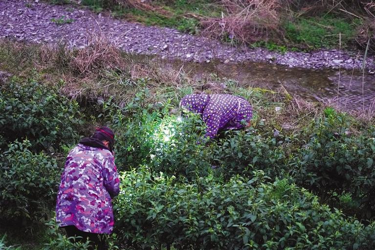 清晨,保靖縣呂洞山,茶農戴著頭燈穿梭在茶樹間,開啟春日采茶的忙碌一天。