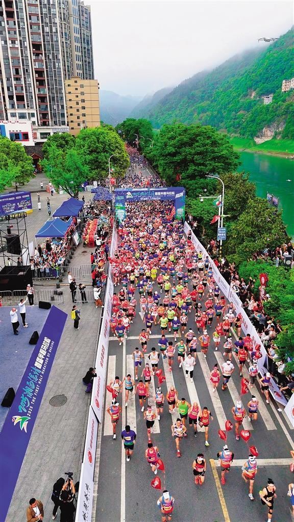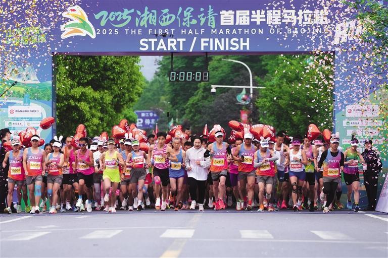 4月20日,2025湘西保靖首屆半程馬拉松在酉水河畔鳴槍開賽。 團結報全媒體記者 楊賢清 攝