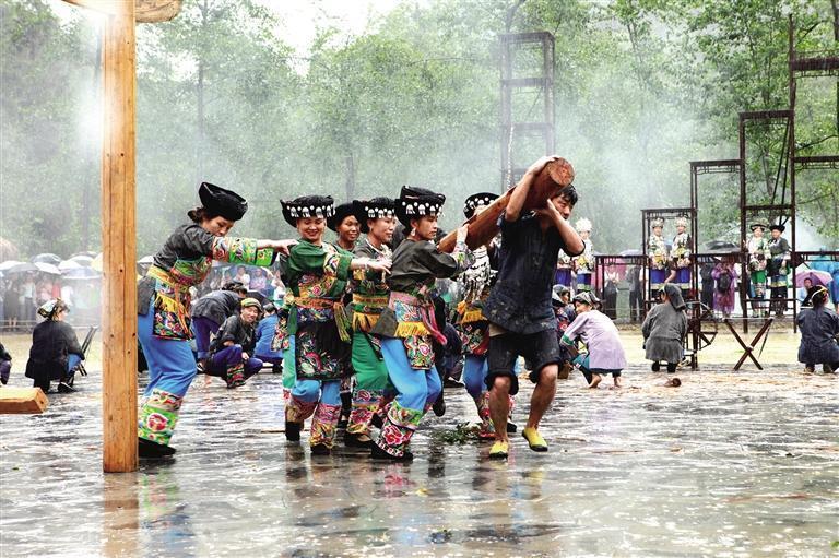 家庭村四月八活動:哥哥起新房,妹妹來幫忙。 龍清彰 攝