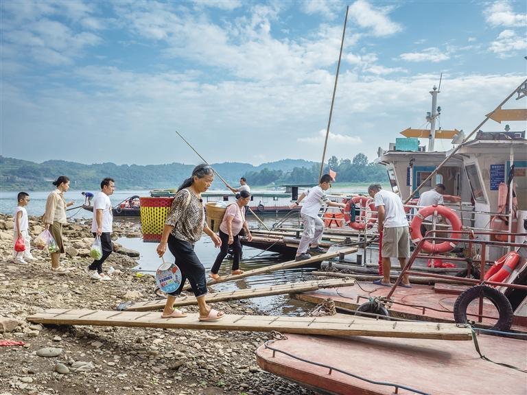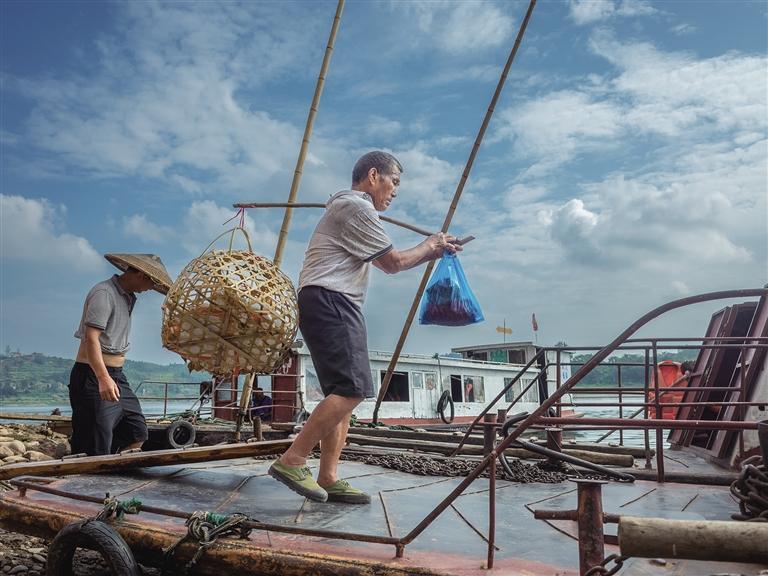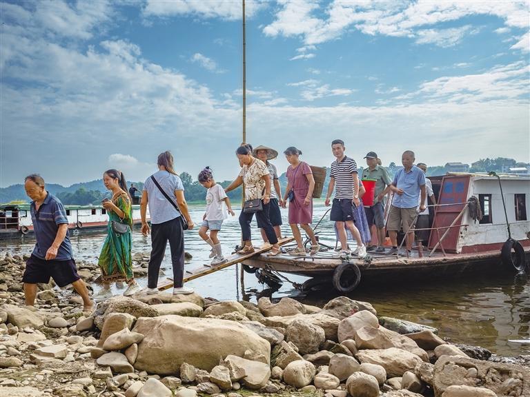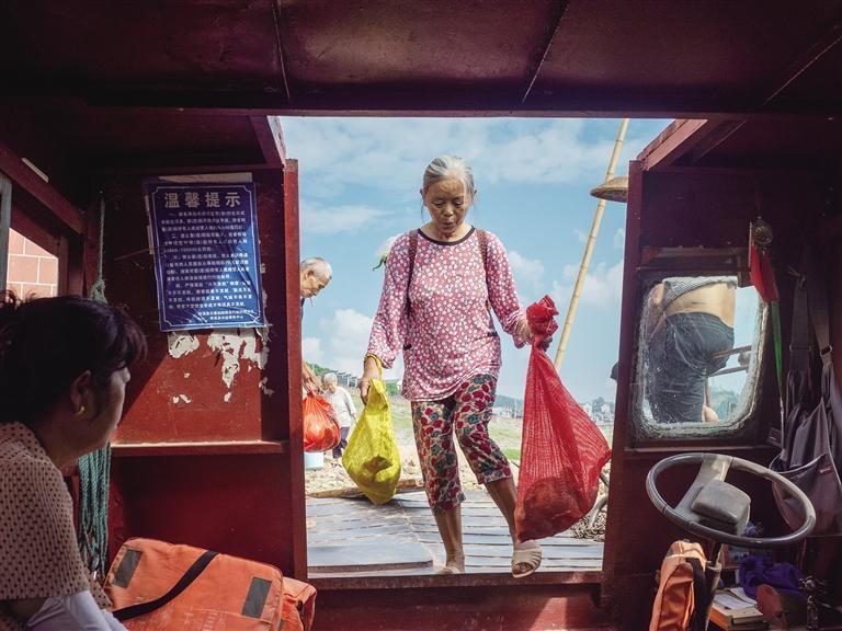 從沅江對岸乘船來浦市古鎮趕集的百姓。