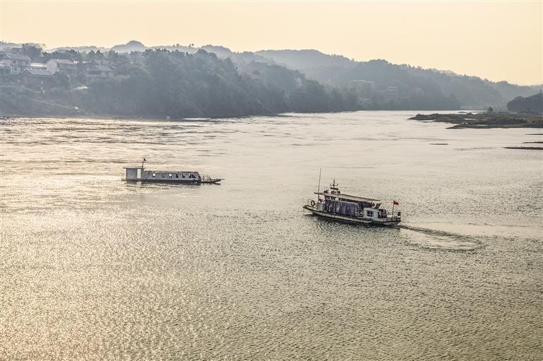 如今,雖因防洪改造,昔日繁華的碼頭僅剩下一座,但往返的小渡船依舊亙古千年不變地承載著兩岸百姓的生活。每逢農歷初二、初七趕集,十幾艘小渡船在薄霧煙波與落日余暉中穿梭,機器聲陣陣,載著百姓往返。趕集的人們帶著自家的雞鴨魚鵝、蔬菜等農特產品去交易,再帶回農耕用具、家電和日用品。孩子們在古街餛飩店品嘗浦市餛飩、桐葉糍粑,一臉滿足;老人們在古鎮茶館喝茶,擺上幾個小時的龍門陣。