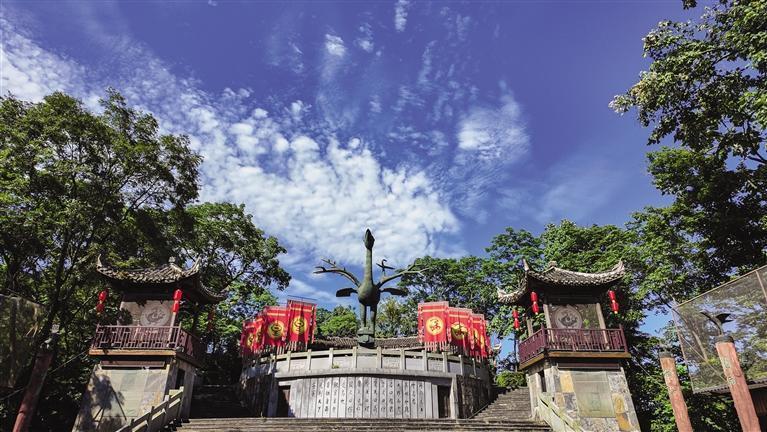神鳳殿,金鳳凰雕塑振翅欲飛,仿佛要攜古城千年風華直上青云。