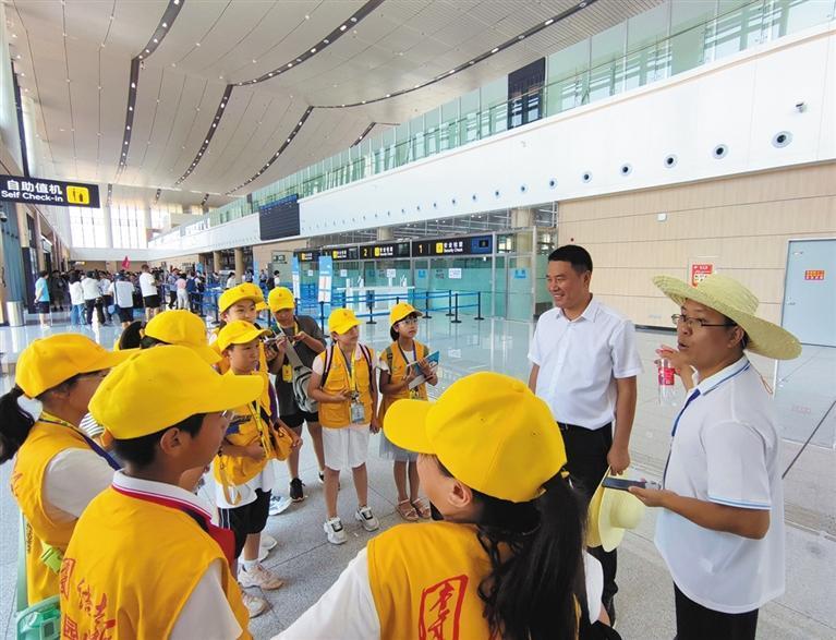 小記者采訪湘西邊城機場工作人員。 龔琳翔 攝