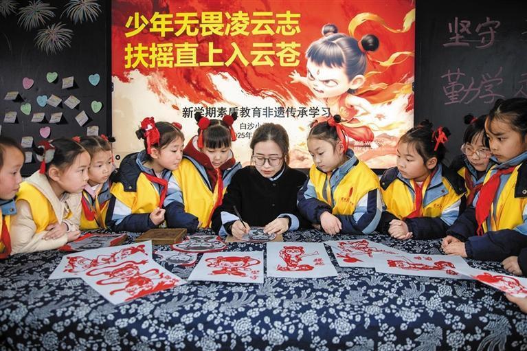 瀘溪縣白沙小學《團結報》校園小記者參加踏虎鑿花非遺體驗活動。