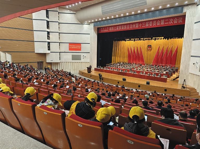 湘西州政協十三屆二次會議開幕,小記者在臺下認真聽會。 龔琳翔 攝