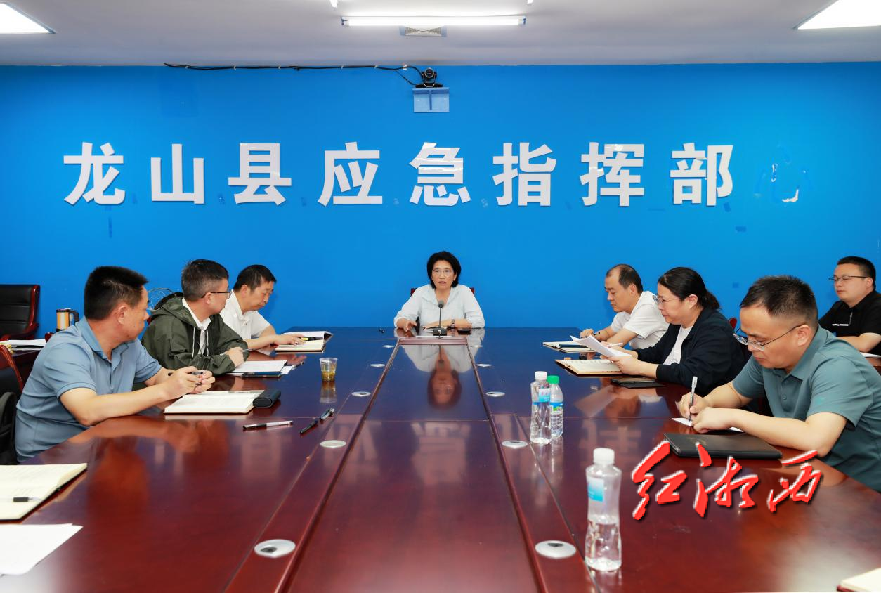 6月19日晚,陳華在龍山參加全州防汛抗災視頻調度會并講話。周興云 攝