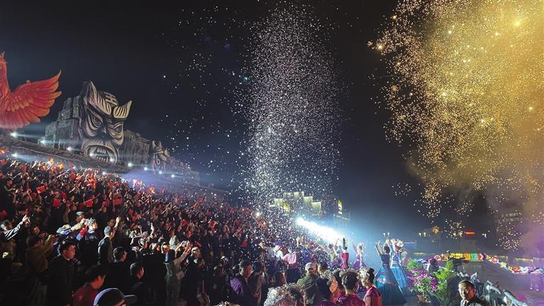 看《邊城》實景演出,唯美如沱江的漣漪,夢幻的演繹將翠翠的等待與儺送的遠行化作光影。文學經典總令人潸然淚下,那是對純真愛情的向往,也是對命運無常的喟嘆。看《鳳凰樣子》互動演藝,感受一場湘西風情的視聽盛宴。苗鼓震天,如山雷滾過;銀飾叮當,似星河墜地;火把點亮夜空,苗家兒女的舞步點燃了整個鳳凰。你會跟著歌聲搖擺,也會在《邊城》的故事里濕了眼眶。青春,就該這樣熱烈又深情,像一場永不落幕的煙火。