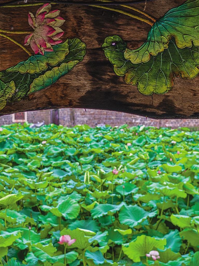 “出淤泥而不染,濯清漣而不妖”讓荷花成為“君子之花”;觀音菩薩坐蓮臺、哪吒以蓮藕重塑肉身等諸多傳說故事,又為荷花賦予獨(dú)特內(nèi)涵。胡家塘旁有一個小小的土地堂,煙火綿延,守護(hù)著古城,也守護(hù)著魚兒在荷下穿梭、青蛙在葉上歡鳴、麻雀驚起蜻蜓亂舞。
