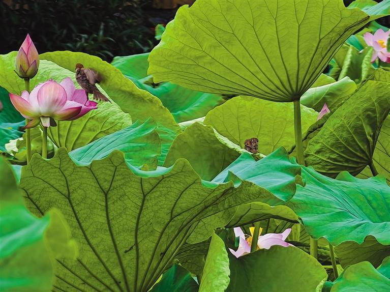 鳥戲動新荷。 團(tuán)結(jié)報全媒體記者 張謹(jǐn) 攝