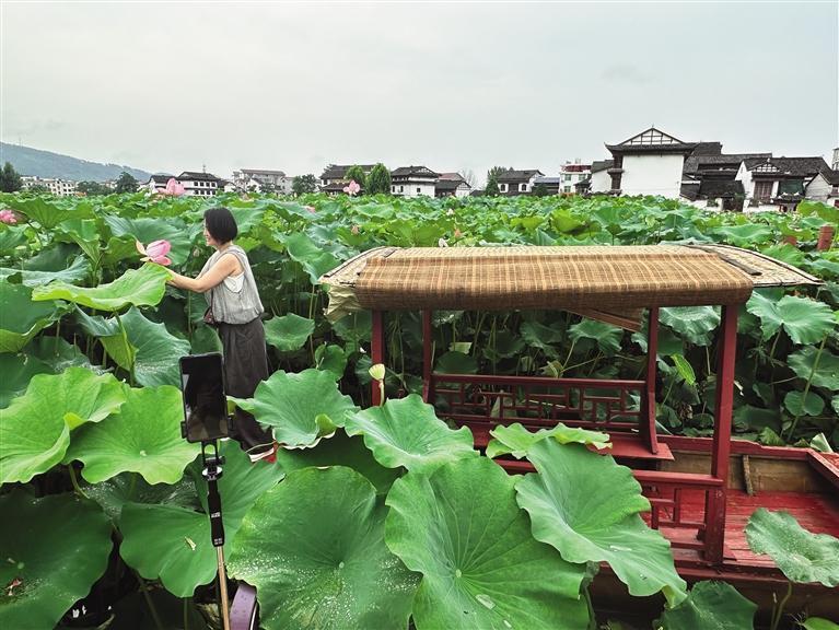 荷香時節(jié),游客到胡家塘游玩賞荷。 團(tuán)結(jié)報全媒體記者 張謹(jǐn) 攝