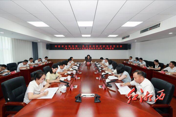 6月30日,湘西州委副書記、州長陳華給州政府辦機關第一黨支部、州政府研究室黨支部講專題黨課。圖為講課現場。周興云 攝
