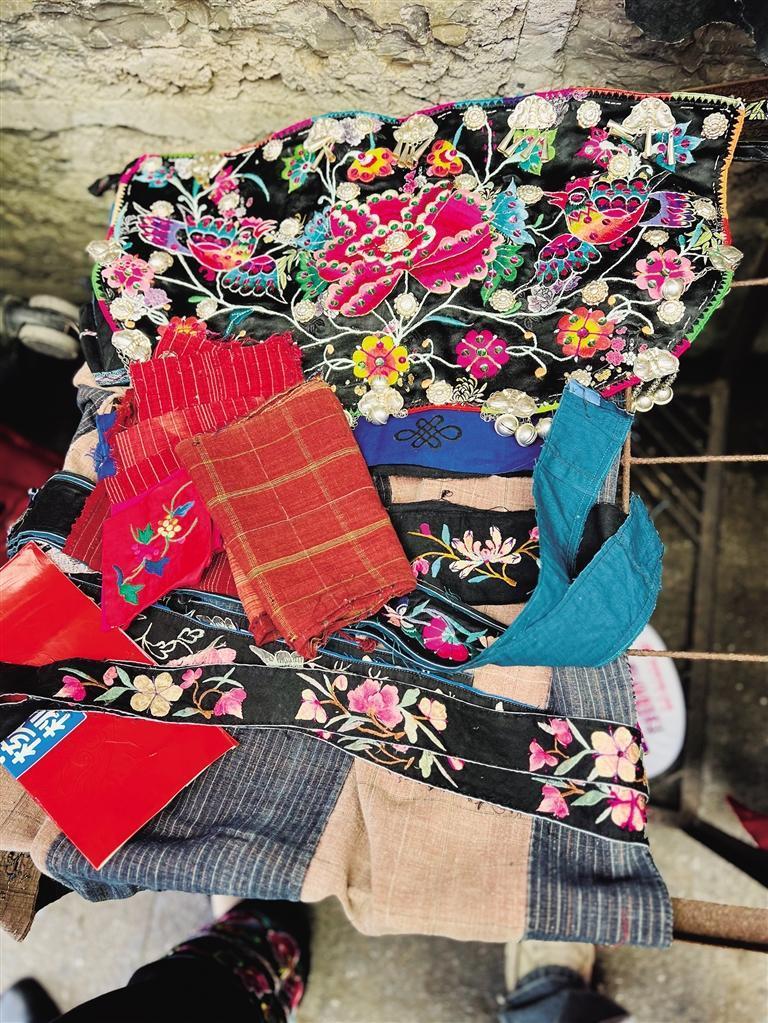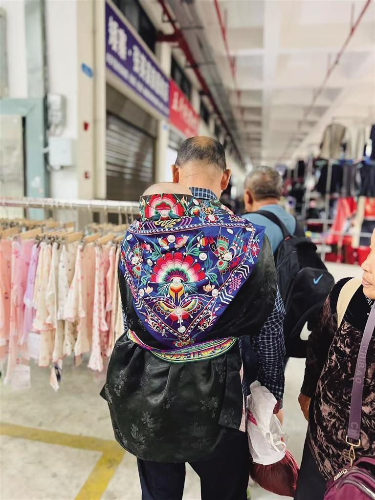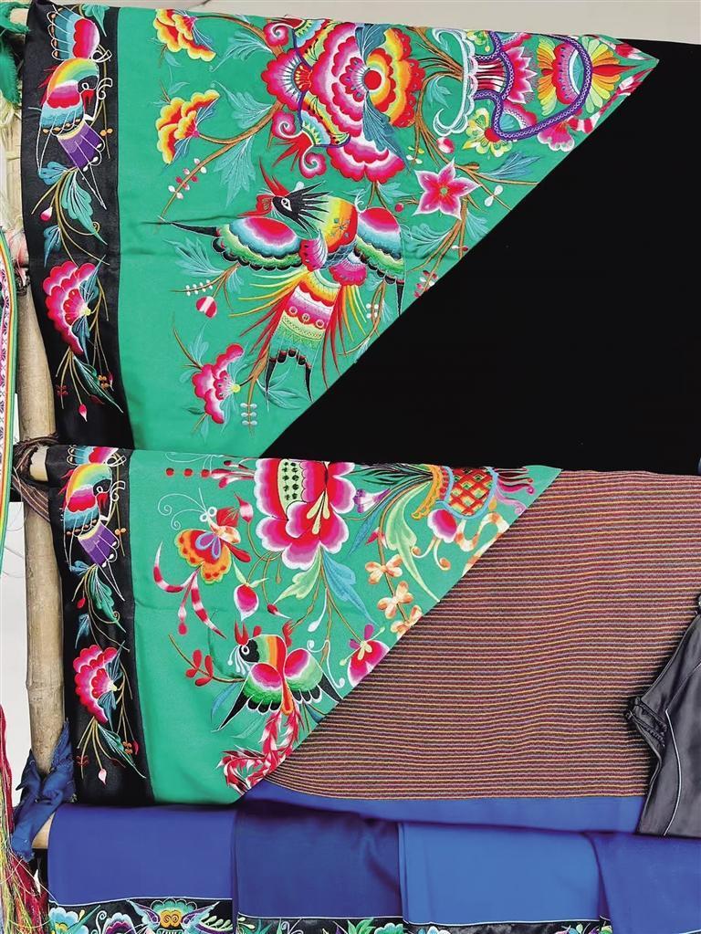 新繡的背兒帶色彩無比艷麗。 石流 攝