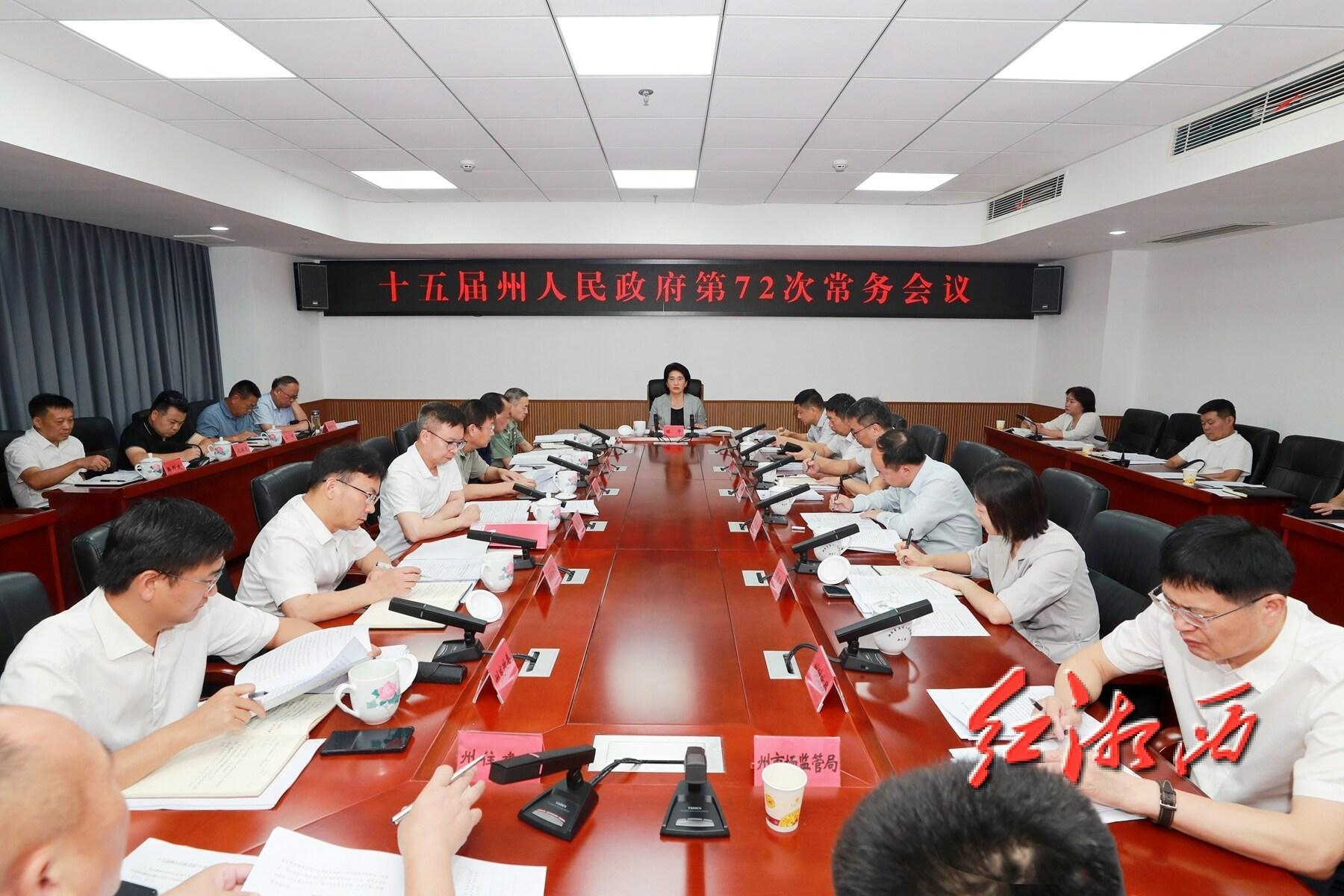 7月9日下午,湘西州委副書記、州長陳華主持召開十五屆州人民政府第72次常務會議。圖為會議現場。周興云 攝