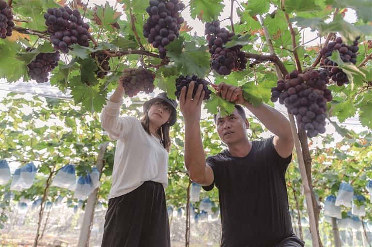 7月9日,吉首市河溪鎮張排村種植的“早春紅”早熟葡萄成熟,果農忙著采摘,供應市場搶“鮮”機。近年來,張排村不斷優化農業產業結構,大力發展葡萄產業,種植面積近1000畝,有效帶動農業增效、農民增收。