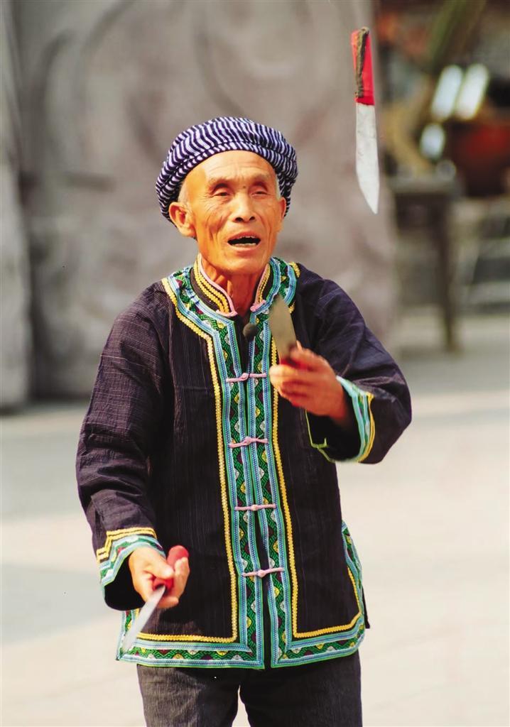 三棒鼓拋刀耍得從容不迫。 向民航 攝