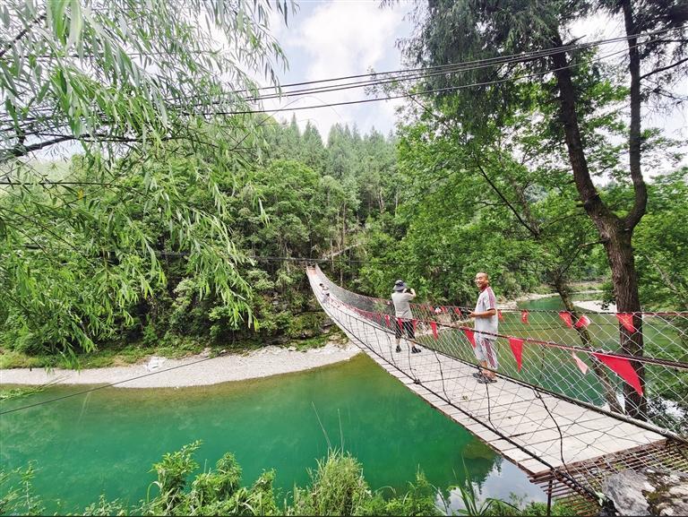 古寨周圍的綠樹小溪小橋,是游客避暑好去處。 團結報全媒體記者 張謹 攝