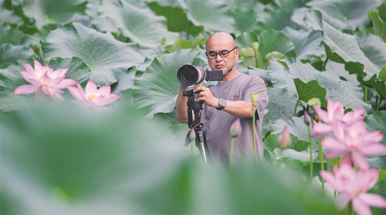 攝影發燒友在古寨拍花拍鳥,拍攝一切美好。 團結報全媒體記者 張謹 攝