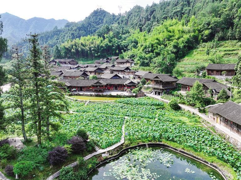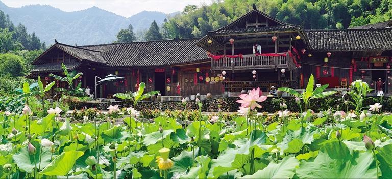 浮在荷花上的土家山寨。 團結報全媒體記者 張謹 攝