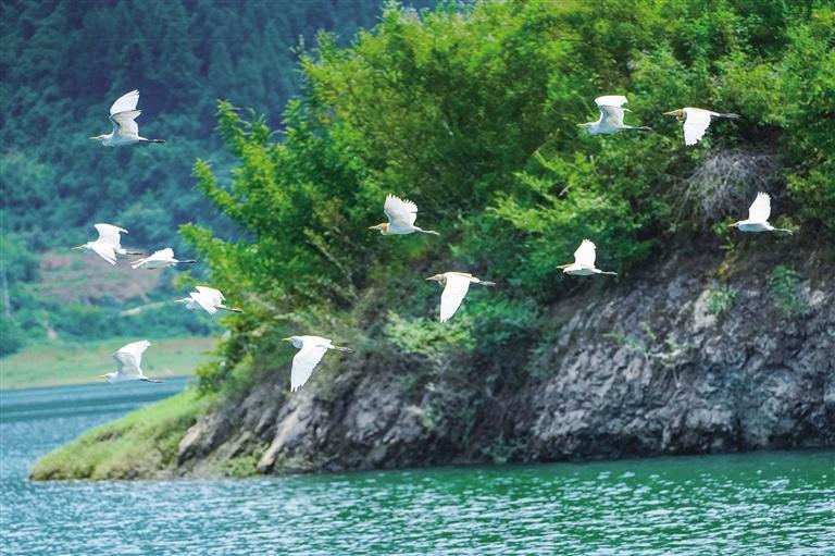 白鷺掠過酉水,詩意而壯麗。團結報全媒體記者 張謹 攝