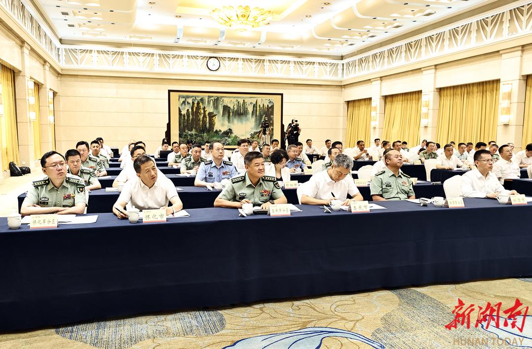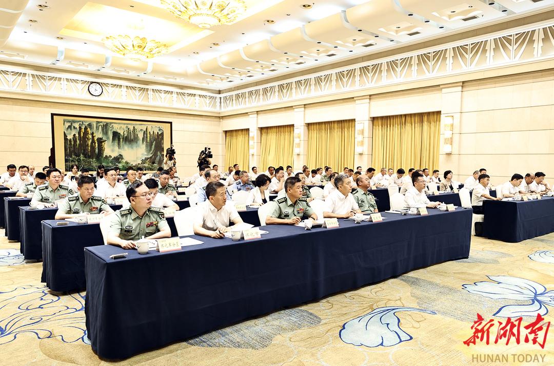毛偉明指出,要緊緊圍繞黨和國家工作大局、國防和軍隊建設全局,大力弘揚雙擁光榮傳統,扎實做好新時代雙擁工作,為強國強軍貢獻更多湖南力量。要當好服務大局的生力軍。駐湘部隊要把三湘大地作為練兵舞臺、強軍戰場,視湖南為家鄉、人民為親人,將地方所需、群眾所盼與部隊所能結合起來,在支持地方發展上作表率,在增進民生福祉上助好力,在做好應急處突中勇擔當。要筑好敢戰能勝的厚根基。聚焦“能打仗、打勝仗”這一強軍之要,落實落細擁軍支前服務,提質提效聯演聯訓工作,建好用好應急應戰設施,鞏固軍地協同的勝戰根基和底氣。要興好融合發展的產業鏈。充分發揮軍地各自比較優勢,加強技術聯合攻關,促進成果雙向轉化,提升產業發展能級,推動新質生產力和新質戰斗力同步躍升。要樹牢崇軍擁軍的好風尚。落實落細各項擁軍惠軍政策,用心用情解決好退役安置、子女教育、家屬就業、父母養老等問題,深化軍地共建活動,宣傳好先進典型,講好強軍擁軍故事,切實解決后顧之憂,營造擁軍氛圍。