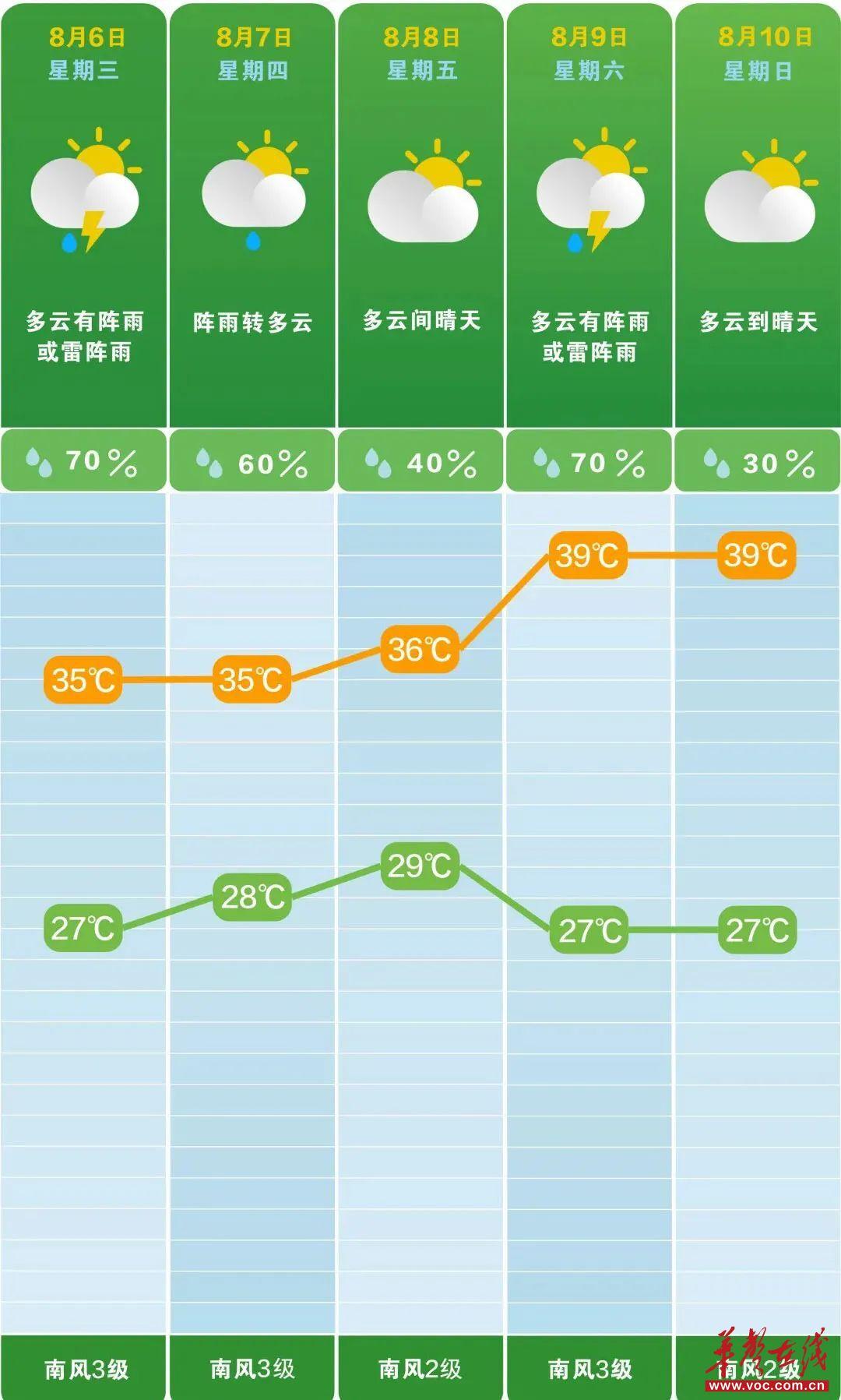 長沙市未來五天天氣情況。 長沙市氣象臺供圖