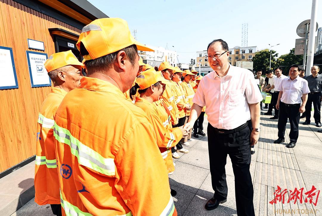 芙蓉區百納廣場環衛驛站內,空調、微波爐和急救藥品等一應齊全,剛下早班的環衛工人們正在休憩。毛偉明走進驛站,感謝“城市美容師”們用辛勤的汗水換來了城市的整潔美麗。他叮囑大家要注意身體,做好健康防護,開心上班、平安回家;要求環衛部門合理安排作業時間,做好防暑降溫物資保障,創造安心舒心的工作環境。