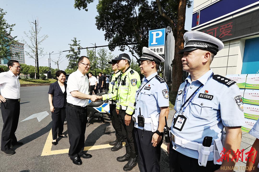 交通早高峰,開福區三一大道上車流如織,開福大隊九中隊的交警有序疏導車輛、維持秩序。毛偉明一行慰問執勤交警,了解日常車流量、應急保障等情況,希望大家以“辛苦我一人,幸福千萬家”的優良作風,全力以赴守護好一方平安,確保道路暢通安全。交管部門要科學部署警力,強化數智賦能,全面提升服務能力水平。