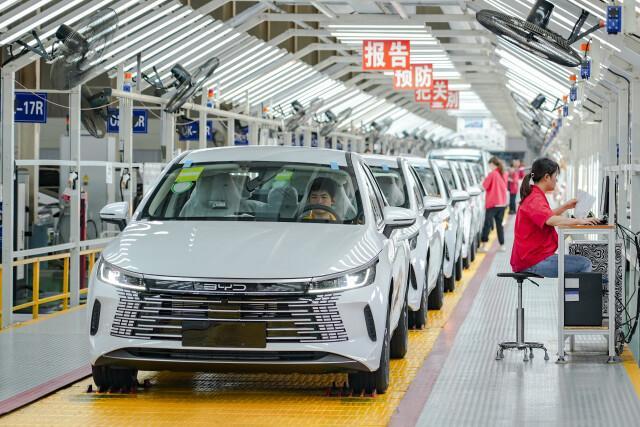 長沙比亞迪雨花工廠,工人在新能源汽車生產線上忙碌。華聲在線全媒體記者 辜鵬博 攝