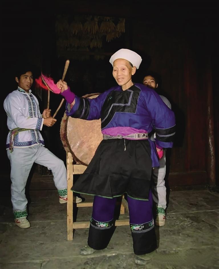 年近七旬的龍英棠仍堅持傳授苗鼓技藝(資料圖片)。 向民航 攝
