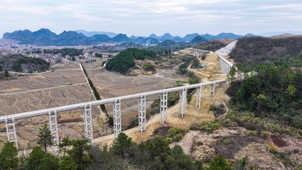 1月14日,新田縣三井鎮長沖村,建設中的毛俊水庫新田灌區長沖渡槽。劉貴雄 攝(湖南圖片庫)