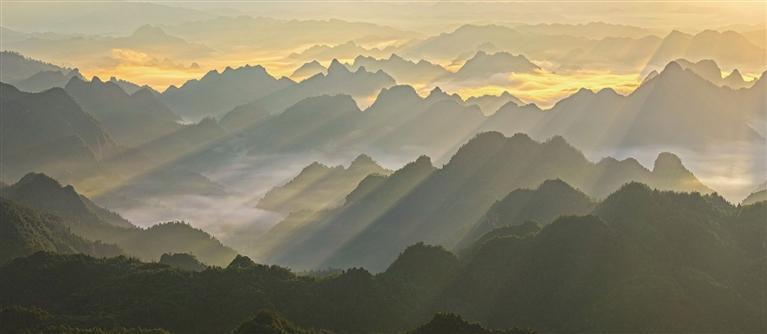 8月19日清晨,永順縣老司城土司大營(yíng),旭日東升,霞光浸染蒼穹。云濤奔涌如萬(wàn)馬歸朝,群山間仙霧繚繞,幻化出絕世秘境。 團(tuán)結(jié)報(bào)全媒體記者 張謹(jǐn) 攝