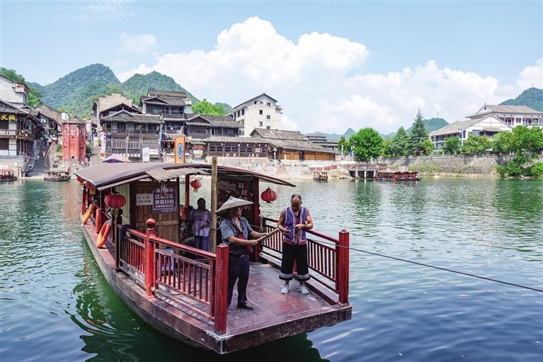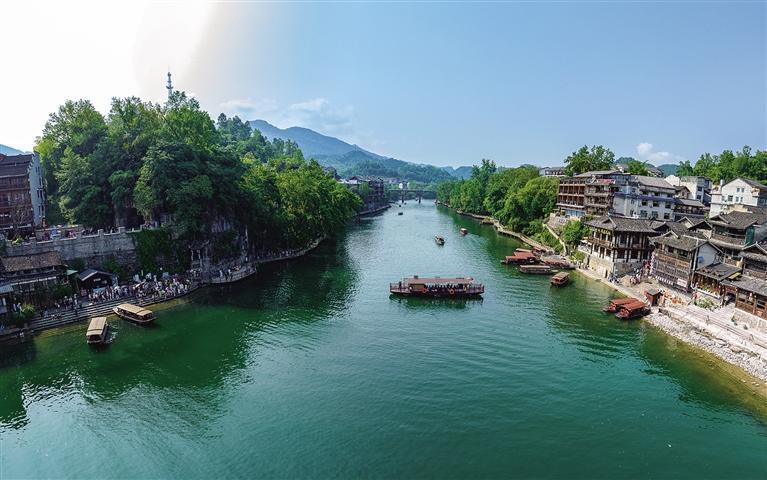 河水清淺處,游魚撥動水面,漾開圈圈漣漪。碧綠如翡的河面上,古老的拉拉渡牽引著游人往復穿梭。