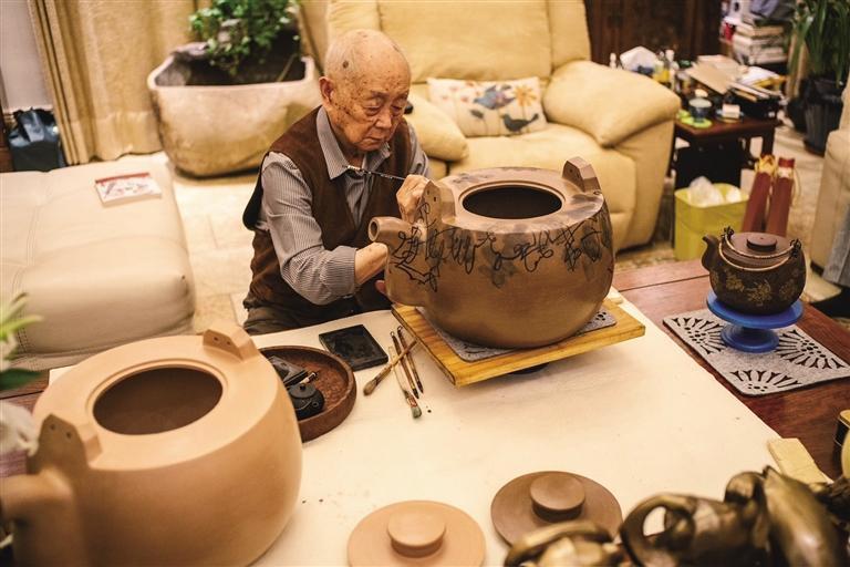 黃永玉先生做過許多不同門類的創作,但是畫宜興紫砂壺的情結,一直不曾放棄。2016年4月18日起,他專門到宜興,畫壺32天。