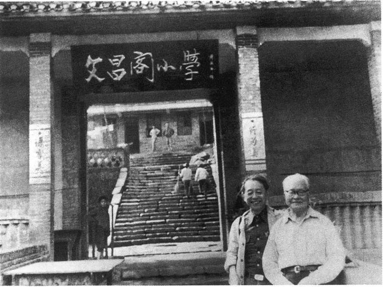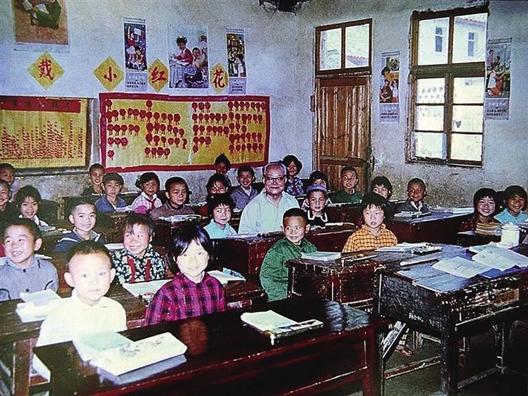 黃永玉回鳳凰后,參觀文昌閣小學,在自己曾經就讀的教室留影。