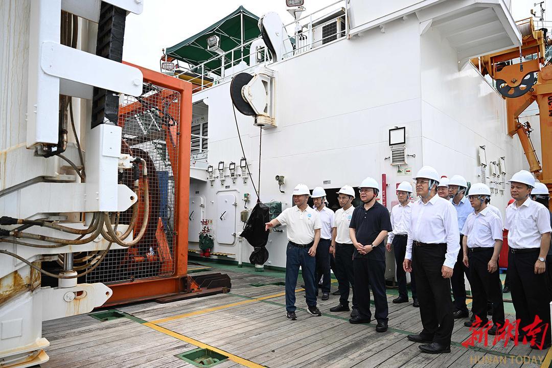 9月8日,沈曉明一行在湖南科技大學(xué)三亞研究院科考船調(diào)研。