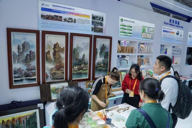 張家界軍聲砂石畫文創有限公司是第一次參展服貿會。“服貿會給我們提供了特別好的平臺,希望借助這個大平臺,多找到一些‘好朋友’。”公司副總經理劉國群介紹,公司生產的砂石畫以砂、石、植物為材,研發出門窗、瓦片等不同形式的千種產品,暢銷海內外市場。