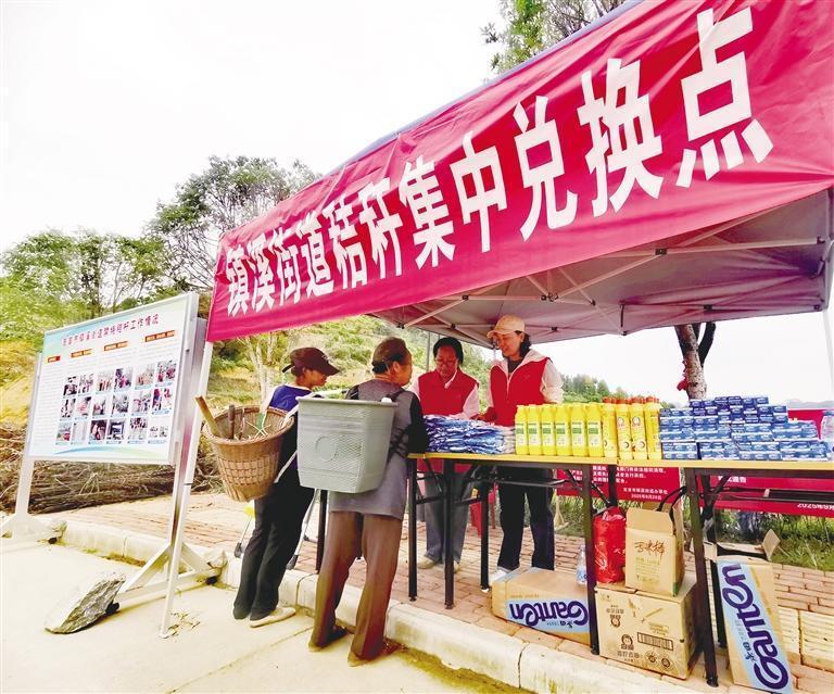 9月21日,吉首市鎮溪街道秸稈集中兌換點,群眾憑玉米稈、芝麻稈等農作物秸稈兌換牙膏、洗潔精、香皂等禮品。今年9月以來,該街道探索秸稈禁燒新方法,發動群眾把田間地頭的秸稈收集起來,送到指定地點兌換禮品,引導群眾積極參與秸稈回收和綜合利用,助力大氣污染防治。 團結報全媒體記者 李再興 攝