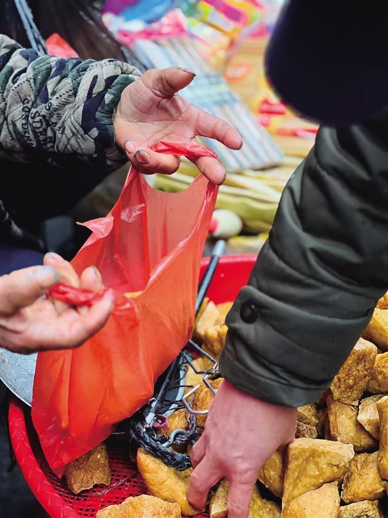 以前的水田河,豆腐不僅是家家戶戶餐桌上的食物,還是走親訪友必備的禮物。小輩們走七大姑八大姨,過門媳婦回娘家,老朋友登門拜訪,提一坨桐葉打包的嫩豆腐,或背十幾塊炕得黃澄澄的干豆腐,定會讓主人家喜笑顏開,連稱客氣。遇到喬遷、婚慶、添丁之類的喜事,豆腐更是宴席上不可缺少的美味佳肴。