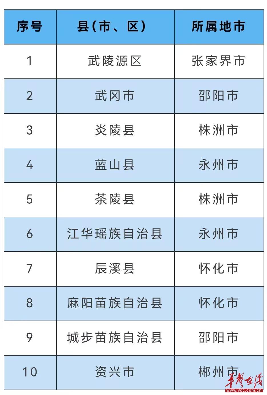 地表水環境質量方面,1-8月,全省地表水水質總體為優。按照城市水質綜合指數評價,全省126個縣(市、區)地表水環境質量較好的前10個縣(市、區)依次為:武陵源區、武岡市、炎陵縣、藍山縣、茶陵縣、江華瑤族自治縣、辰溪縣、麻陽苗族自治縣、城步苗族自治縣、資興市。